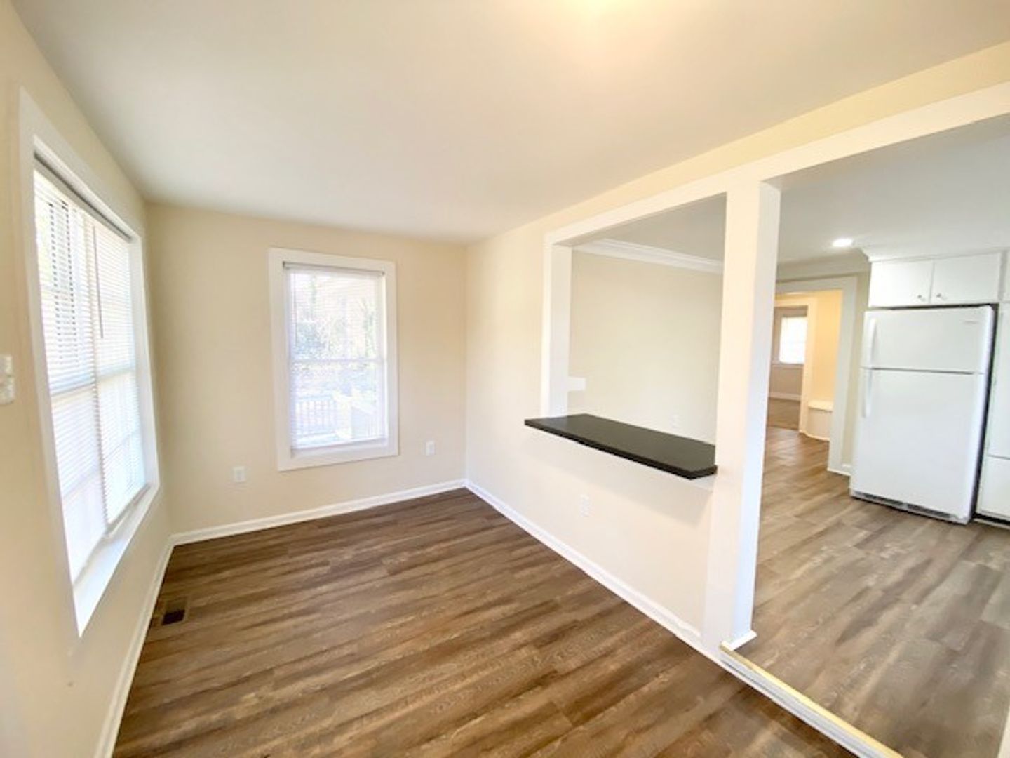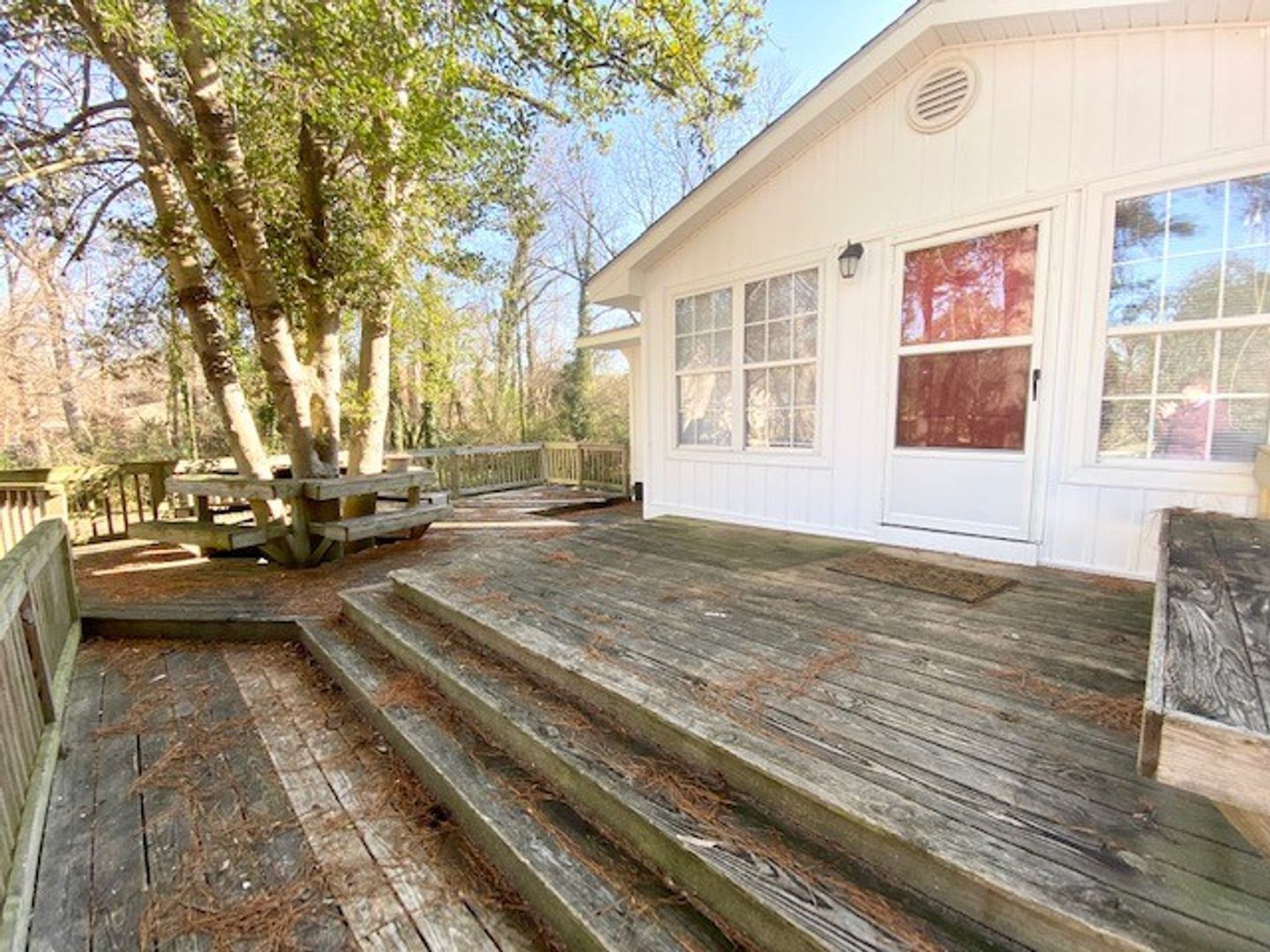 Very nice 2 bedroom, 1 bath home with an eat-in kitchen, living room and a separate den. This house has a beautiful, large deck and has Stoney Creek running along the side of the property. Located conveniently to Highway 64 or Sunset Ave. Includes a refrigerator and stove. Washer and dryer connections at entry way.